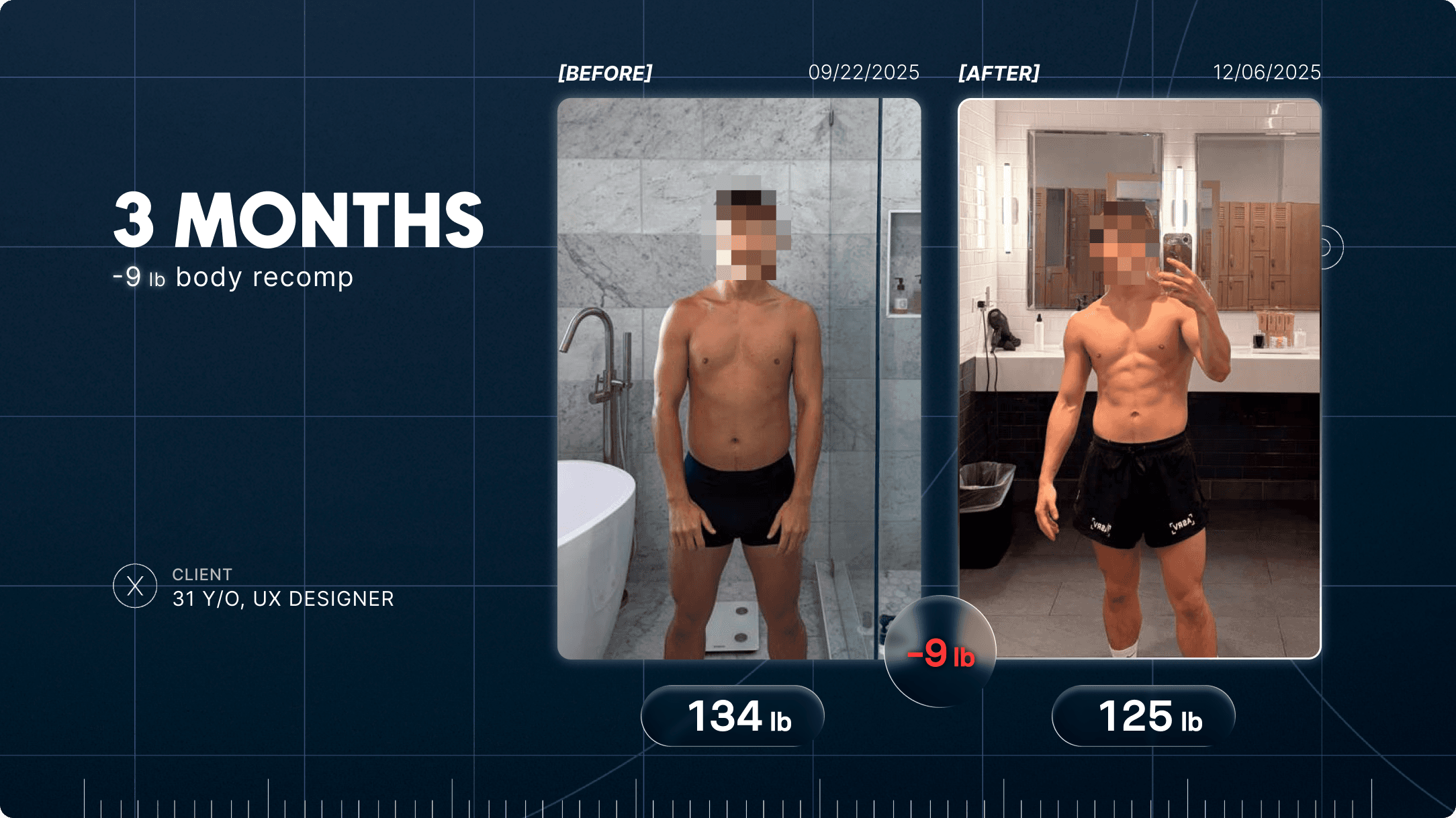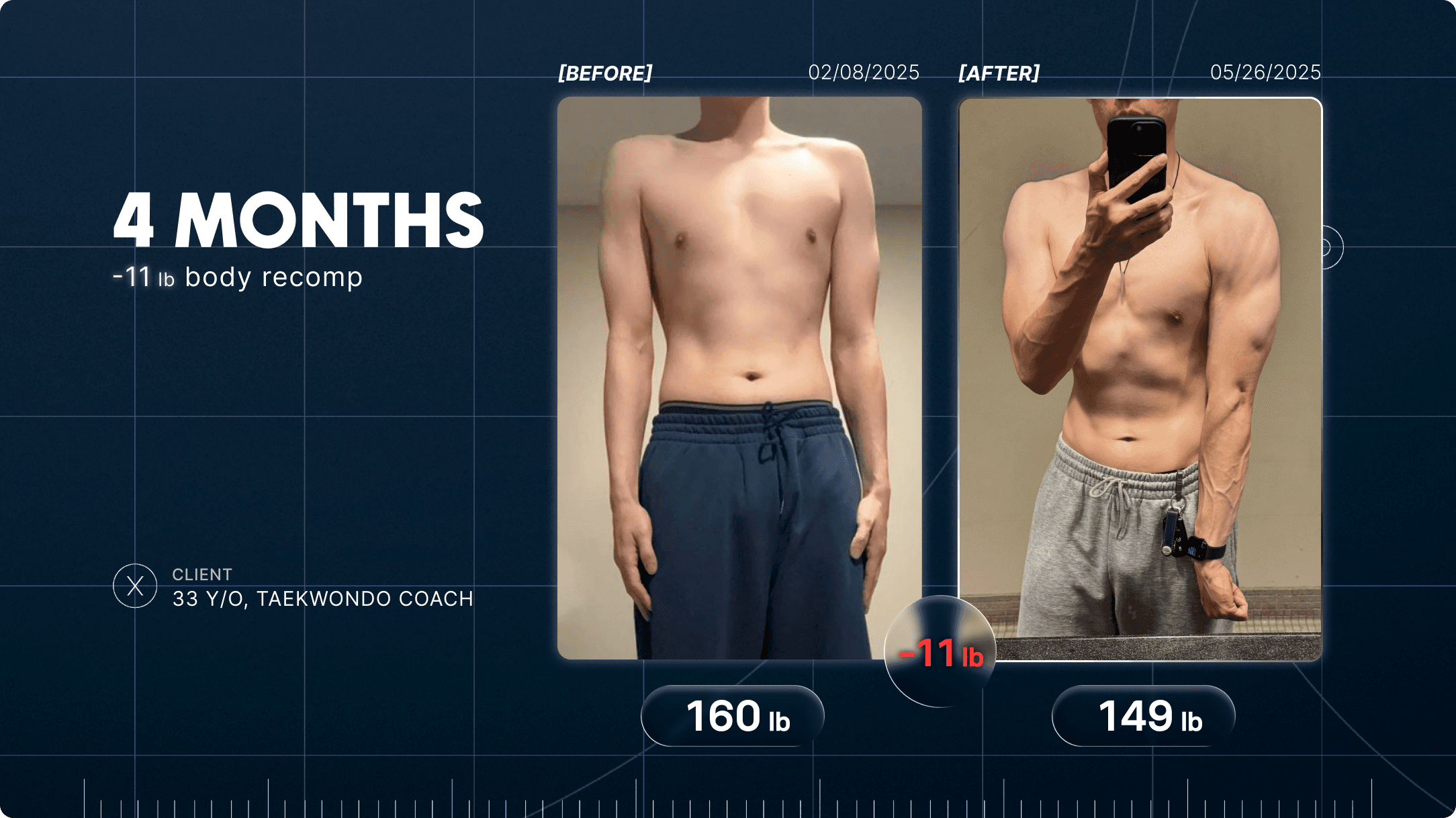 "I was putting in hours at the gym but I wasn’t really seeing a difference. Since working with Leo, I’ve lost about 20lbs and this is probably the leanest I’ve ever been. As we ramp up to our bulking phase, I am confident that we’re going to see even more results soon. It’s a pretty big lifestyle change but you can trust him to help you to a healthier one." - Jeremy