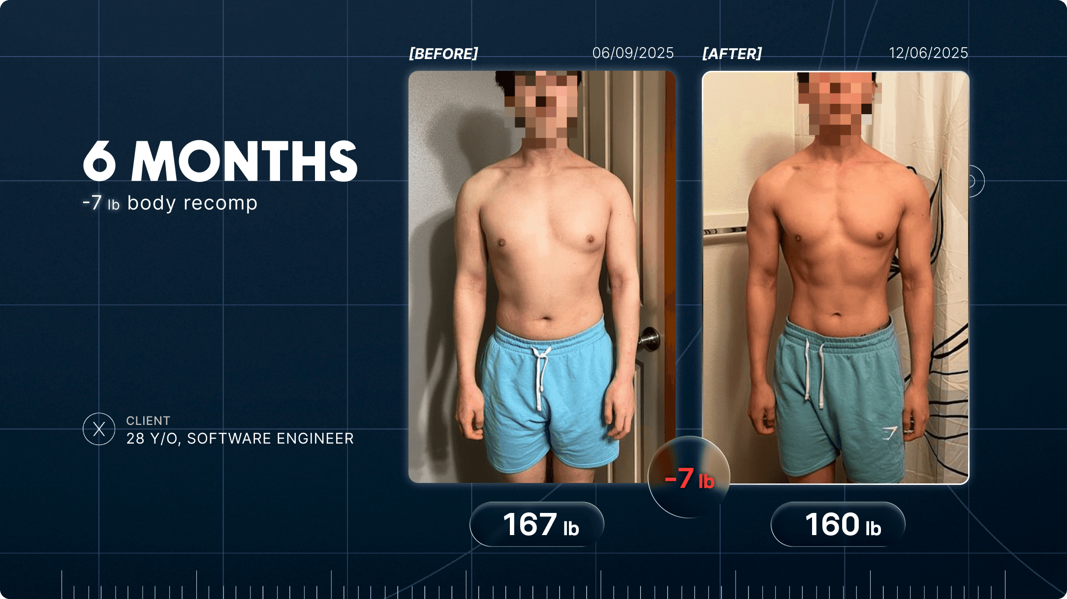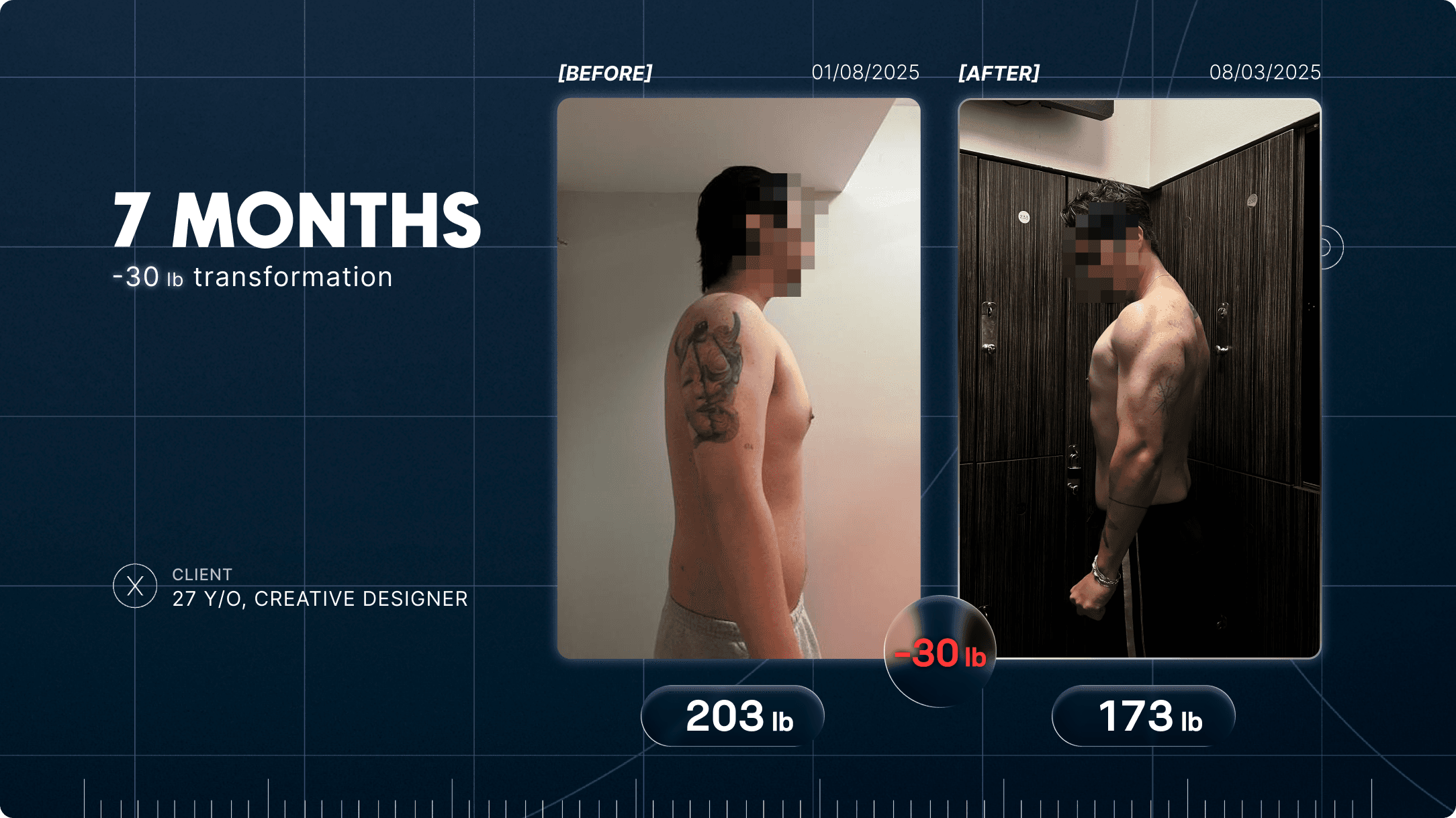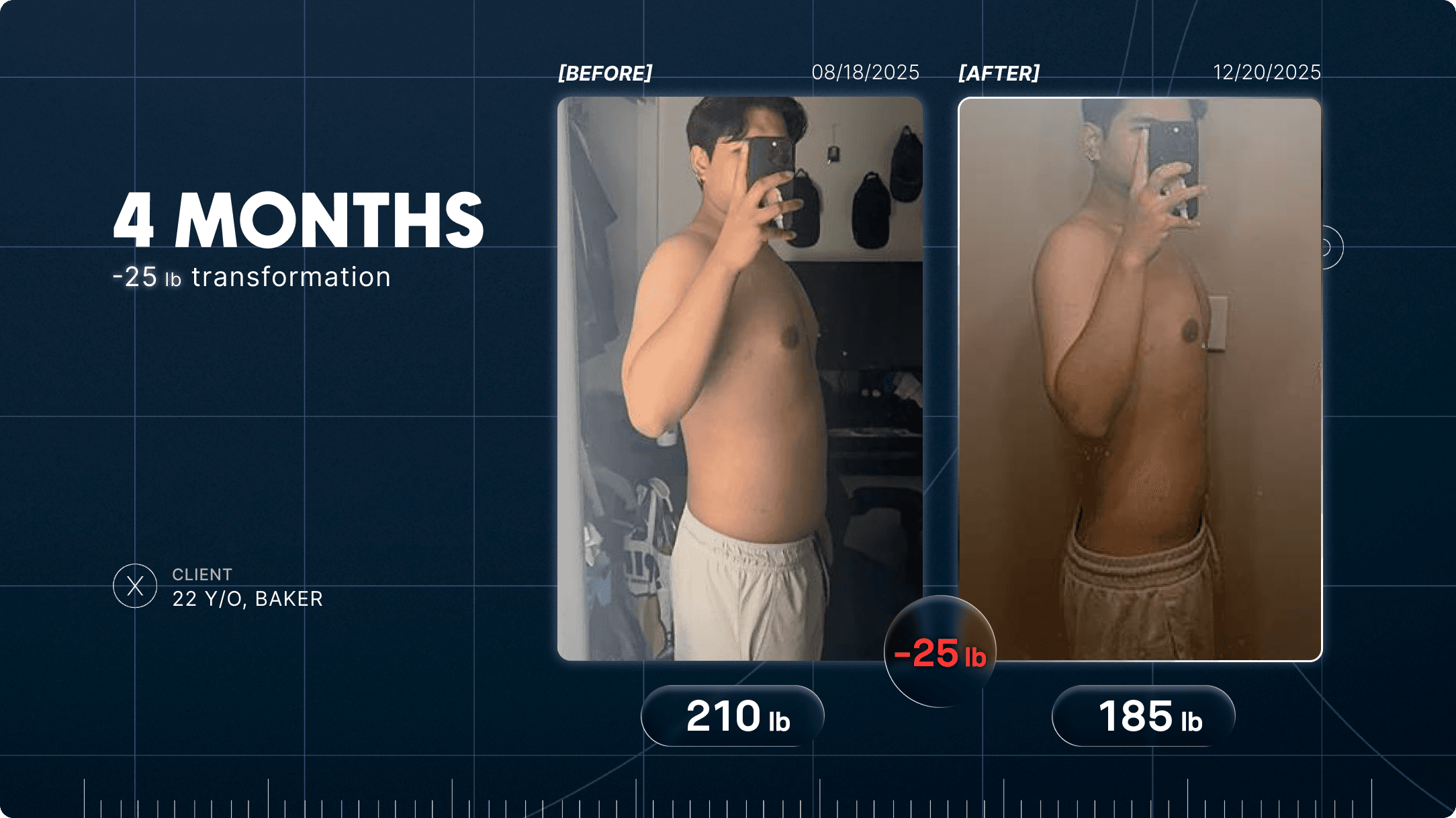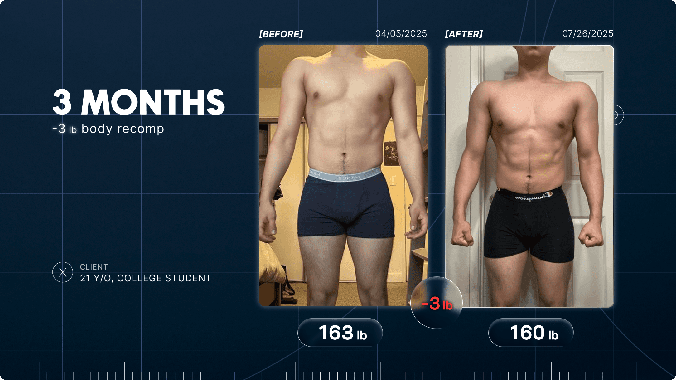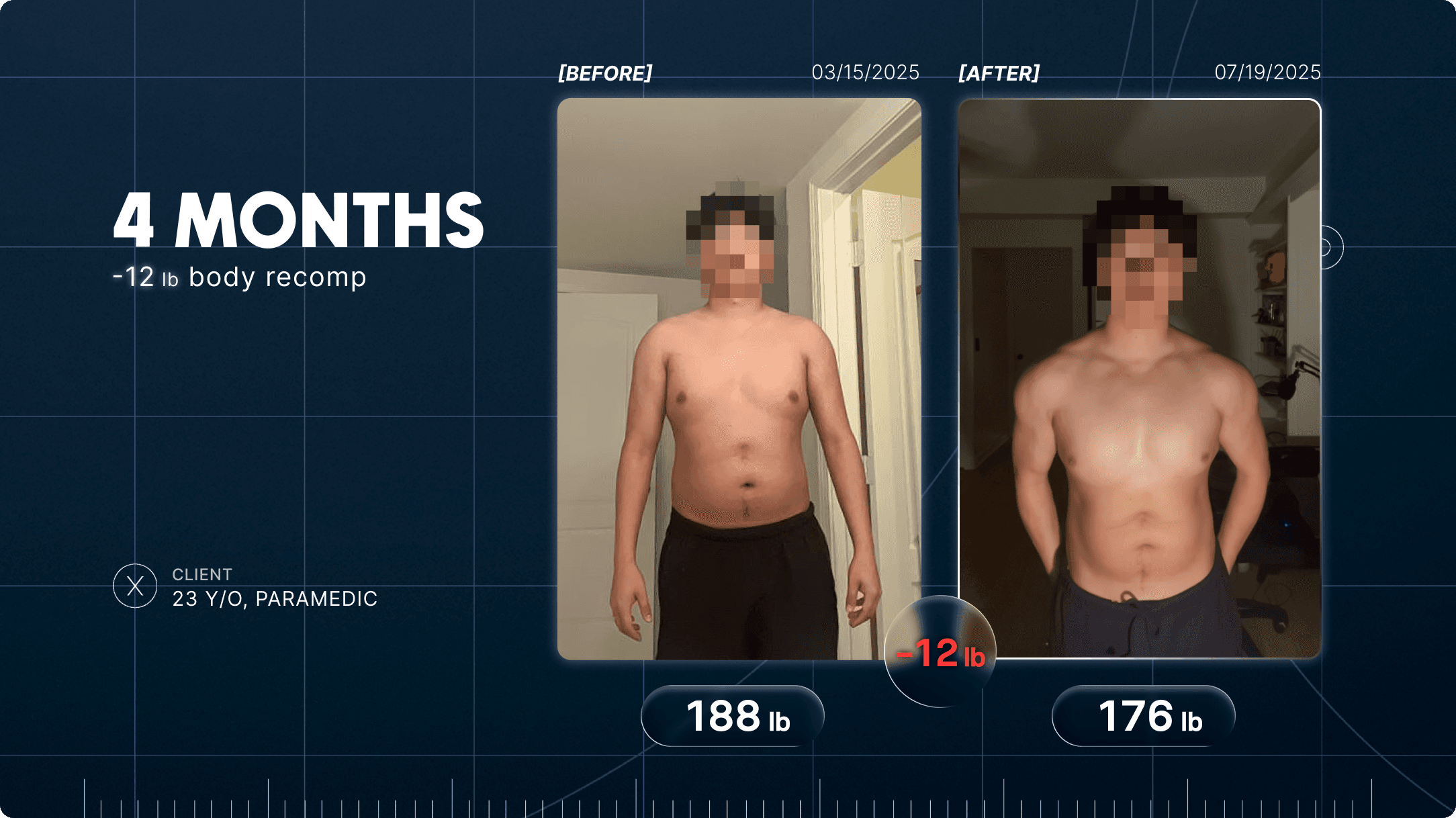 "I basically outlined my goals and he gave me realistic expectations. He made a workout plan specifically tailored to me; a diet plan that he's still adjusting with me as I go through my journey. I've been with him for 4 months now, and I have seen an increase in my strength. More importantly, I've seen my body tone and develop in the way that I want." - Hayden